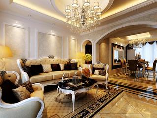 【恒盛皇家花园欧式风格】:在色彩上,经常以白色系或黄色系为基础,搭配墨绿色、深棕色、金色等,表现出古典欧式风格的华贵气质。在材质上,一般采用樱桃木,胡桃木等高档实木,表现出高贵典雅的贵族气质。较为典型的欧式元素为实木线、装饰柱、壁炉和镜面等,地面一般铺大理石,墙面贴花纹墙纸装饰。室内布局多采用对称的手法,以白、黄、金三色系为主。